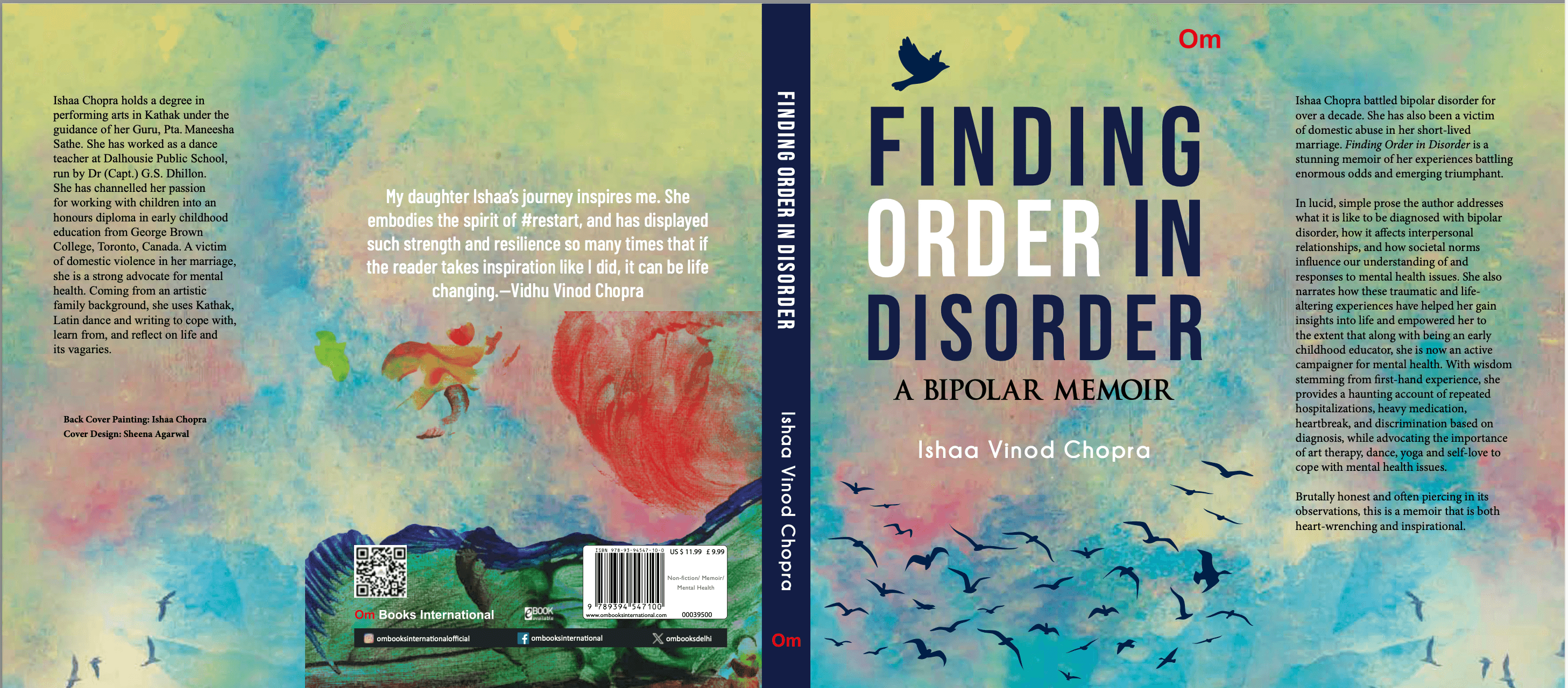 'Finding Order in Disorder', her deeply personal memoir, explores intersectional themes of lived experiences in mental well-being and being a survivor of intimate partner violence through the medium of expressive arts such as dance therapy, mad poetry, visual arts, and journaling. She has led dance workshops through community arts engagement at Toronto Neighbourhood Organization- TNO, George Brown College and Workman Arts Satellite programming at North York Arts.